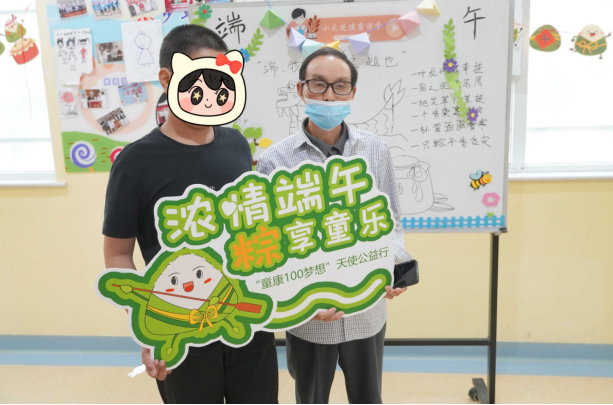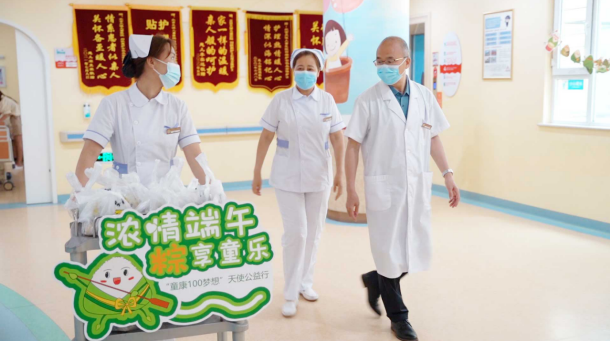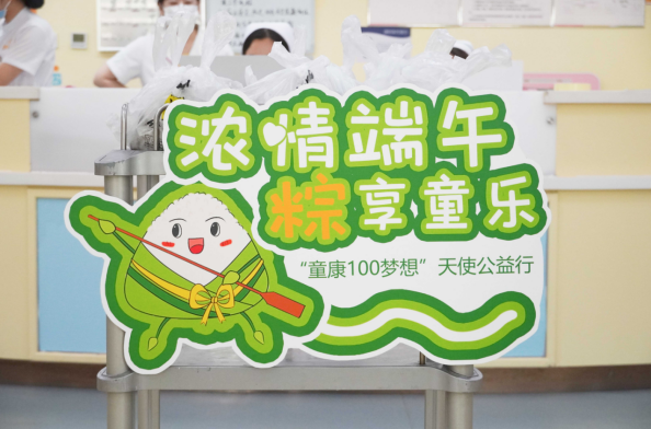 “您好,我代表天使全体医护人员,给大家送端午节粽子来了,祝孩子们端午安康,早日康复!”