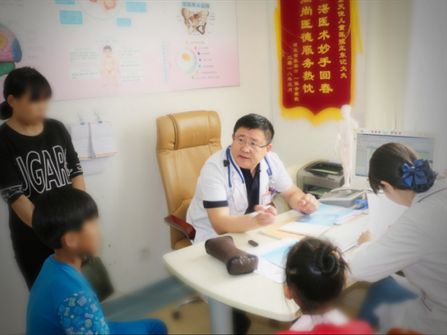 “冰冻三尺非一日之寒”,练就一双“火眼金睛”也并非易事。从医30年,日复一日,王东记主任已记不清自己一共看过多少位患者,但是对待每一位来到儿科的患儿,他都一视同仁。然而,一整天不停歇的工作,会对颈椎、肩部、眼睛都造成很大的压力,“顾不上吃饭,顾不上喝水”也是常有的事。王东记主任对此却很坦然,他用“忍饥挨饿,乐在其中”描述自己的工作状态,“忙起来的时候,精神高度集中,眼前只有病人,只有工作,顾不上其他的事儿,但是每次为病人诊疗之后都会有所收获,有时候是疾病方面的,有时候是生活态度方面的。所有的收获都会帮助我进步,为我以后能更好的服务于病人提供助力,所以我是乐在其中。”王东记主任欣慰地说道。