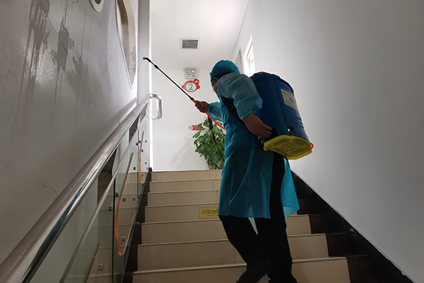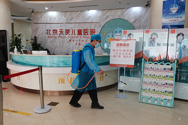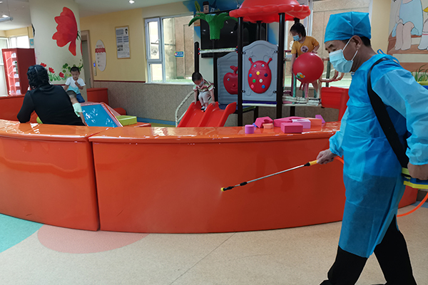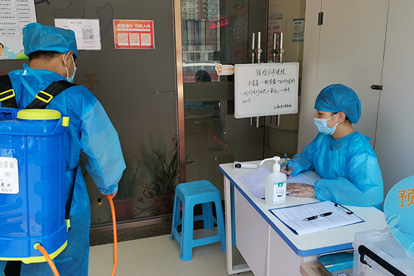工作人员每日负责对门诊、大厅等公共区域重点区域进行消杀,诊室进行消毒,保障患者就诊安全。