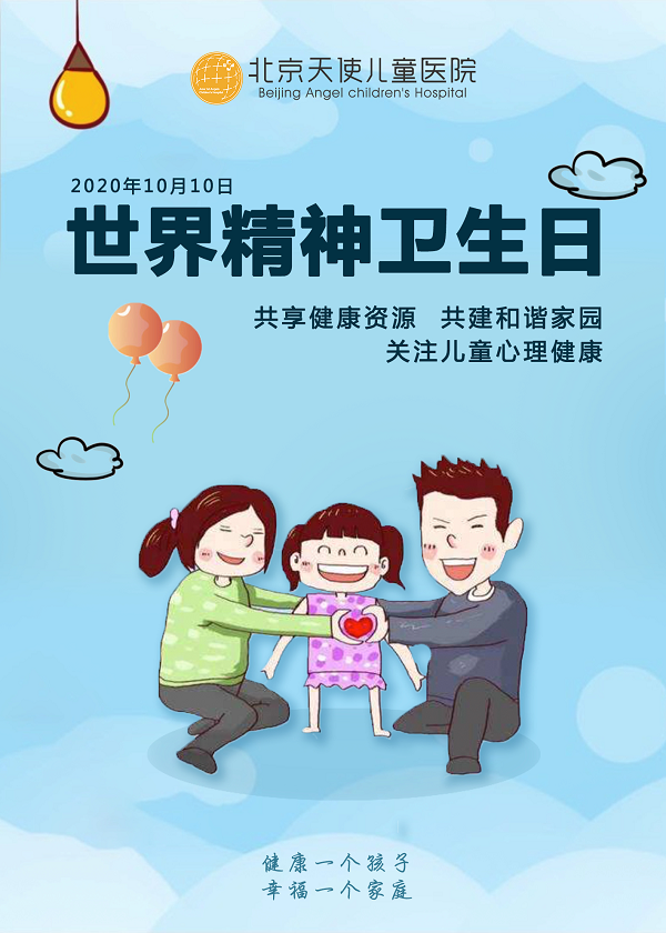 病情问诊2020年10月10日是世界精神卫生日,旨在通过多途径的宣传教育,让儿童青少年掌握精神卫生、心理健康相关知识,使家长、学校、社会了解儿童青少年心理特点,全社会共同维护和促进儿童青少年心理健康,拥有健康快乐的人生。