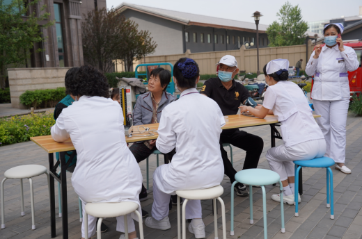 活动伊始,北京公益行的医护人员在负责人的带领下来到朝阳广华新城社区,她们有的负责为社区居民展示健康宣教展板;有的为社区居民测量血压并评估健康状况;有的向居民健康宣教,向居民普及卫生知识和防病常识。